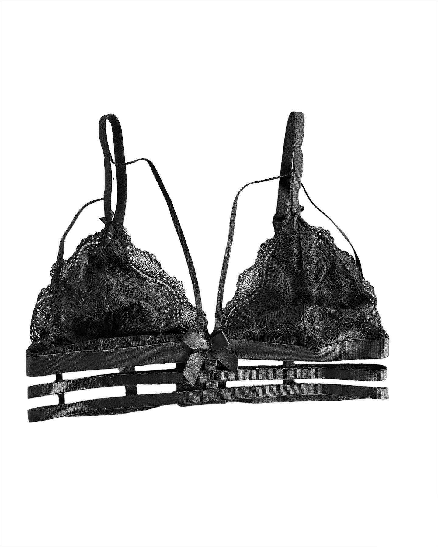 - Bralette de encaje triangular sin copa brinda una sensación ligera y natural, ideal para quienes buscan comodidad sin perder sensualidad.